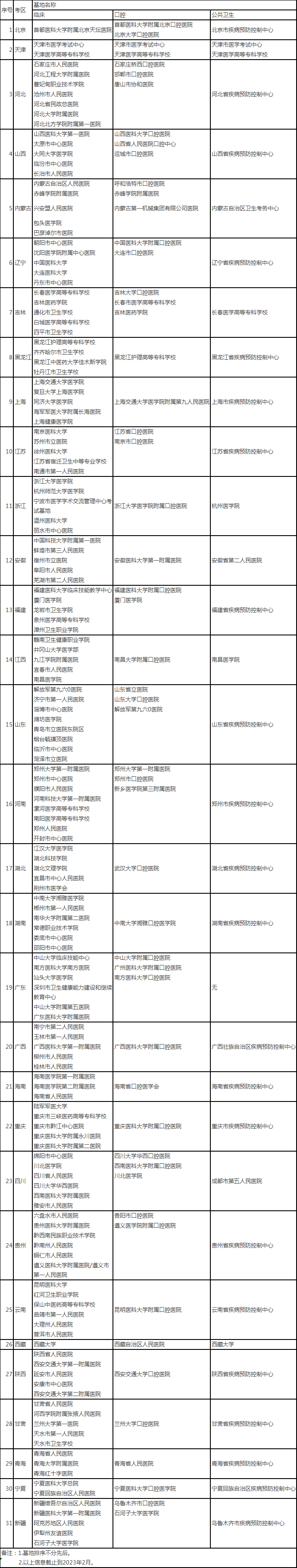 2023年国家医师资格考试实践技能考试基地名单(西医部分)