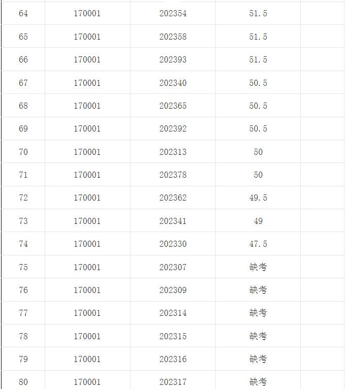 附件:2023年歙县公开引进卫生专业人才乡镇卫生院170001岗位笔试成绩