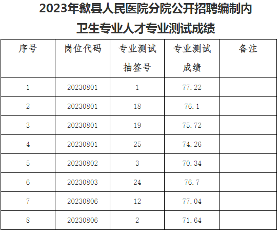 附件:2023年歙县人民医院分院公开招聘编制内卫生专业人才专业测试成绩