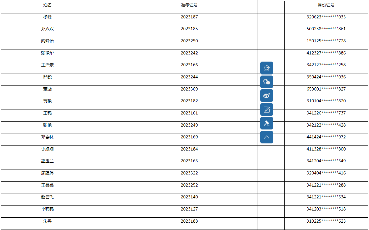 2023年共有357名考生报名参加了阜阳市中医确有专长考核,缺考41人,实际参加考核的考生316人。中医确有专长考核分理论(基础理论、临床理论)考试和实际本领(实践技能、临床答辩)考核。根据《传统医学出师考核和确有专长考核实施方案(试行)》要求,理论考试(180分及格)和实际本领考核(60分及格)均达到及格分数及以上时合格。杨峰、郑双双等77名考生通过了阜阳市2023年中医确有专长考核,现予以公示。公示时间:2023年11月7日-14日。公示期间,如有异议,请拨打投诉电话:驻委纪检监察组:2603609,邮箱:862922363@qq.com,fywjwjjz@163.com;考试中心:2262126,邮箱:510421895@qq.com。