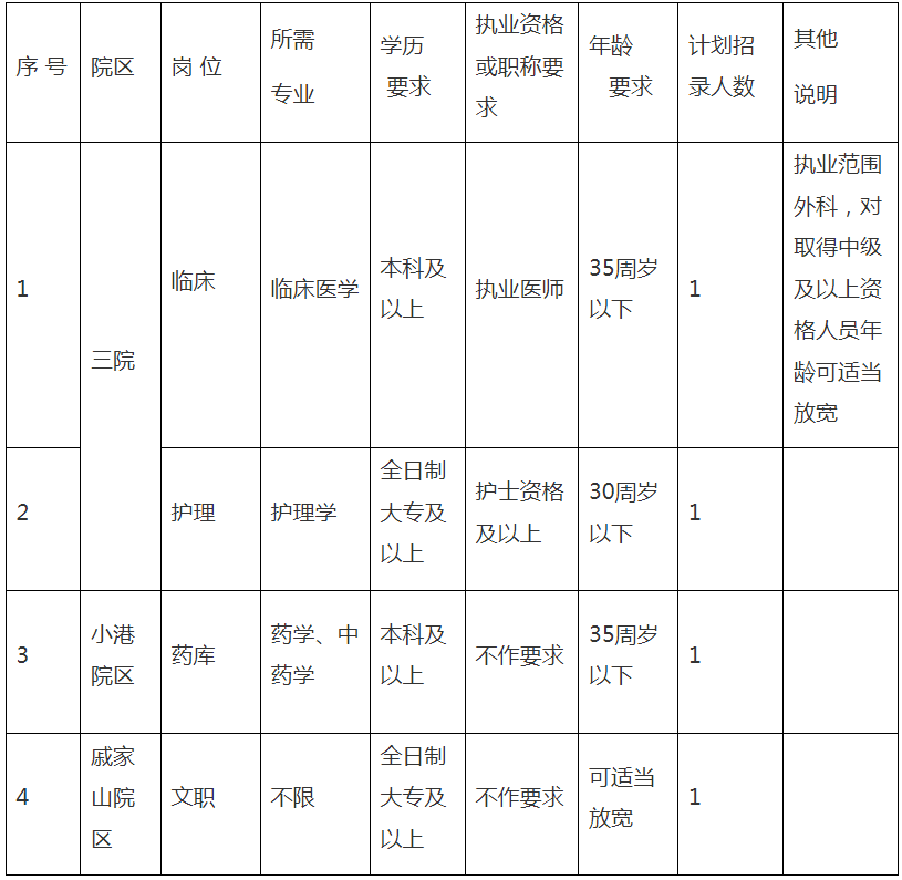 因北仑区第三人民医院医疗健康服务集团工作需要,现面向社会公开招聘编外用工人员4名,具体如下: