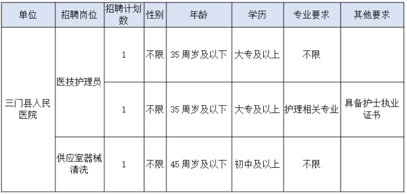 三门县友帮劳务有限公司因业务需要,特面向社会招聘为三门县人民医院派遣员工,现将有关事项公告如下:
