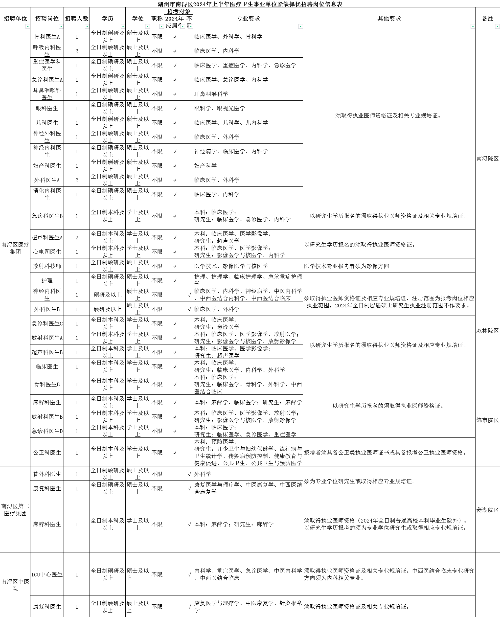 附件:湖州市南浔区2024年上半年医疗卫生事业单位紧缺择优招聘岗位信息表