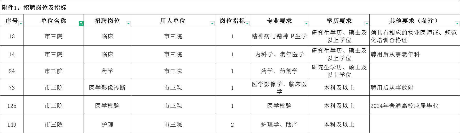 6.对报考市级医疗卫生健康单位学历要求为本科及以上岗位者(不包括报考定向岗位者),要求为普通高校毕业生,并具有相应专业的学士及以上学位。本简章中市级医疗卫生健康单位包括市人民医院、市中医医院、市妇幼保健院、市四院(上述市级医院不含分院,下同)、市三院、市疾控中心、市卫校、市急救站。