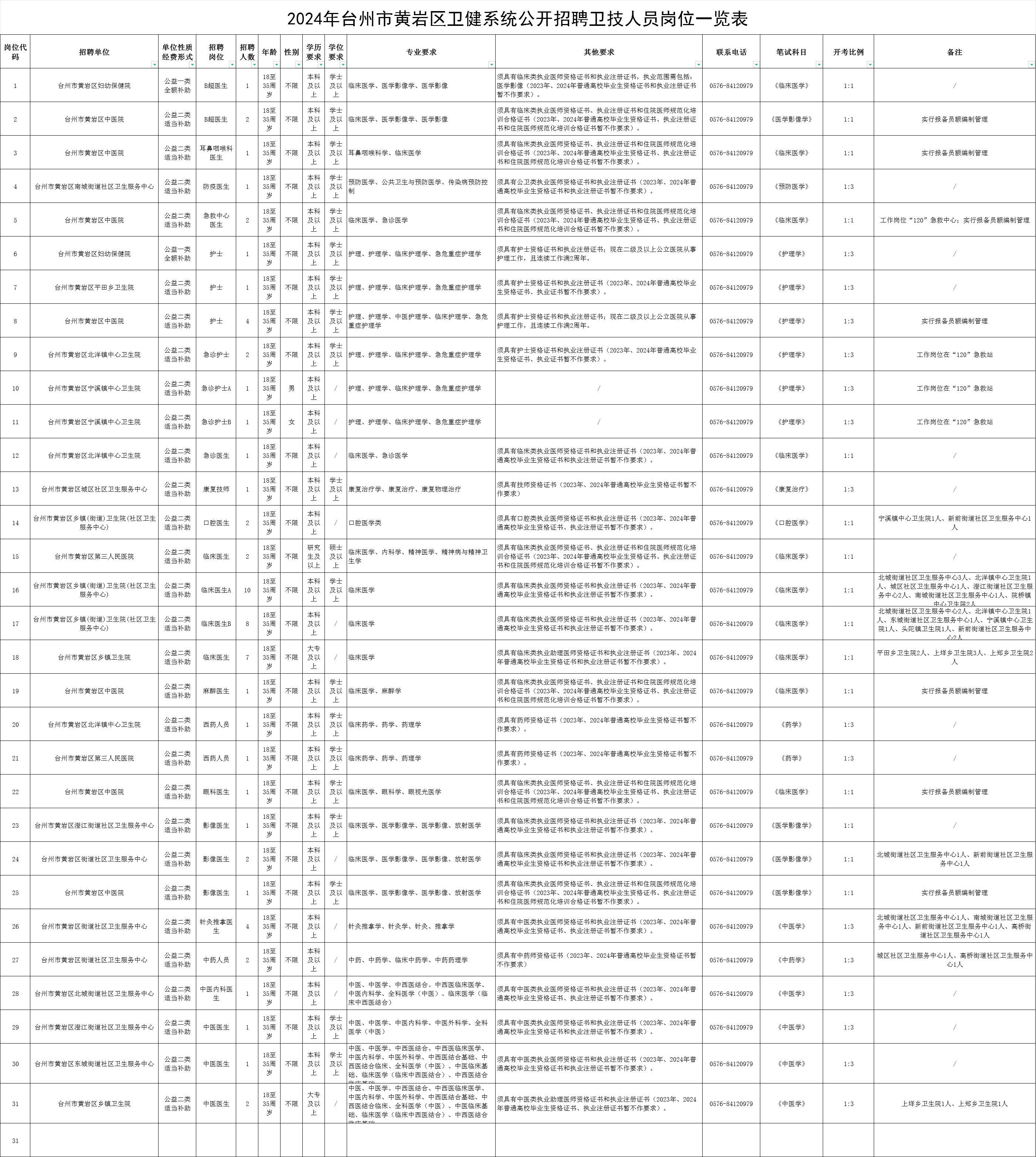 附件1 2024年台州市黄岩区卫健系统公开招聘卫技人员岗位一览表.xlsx