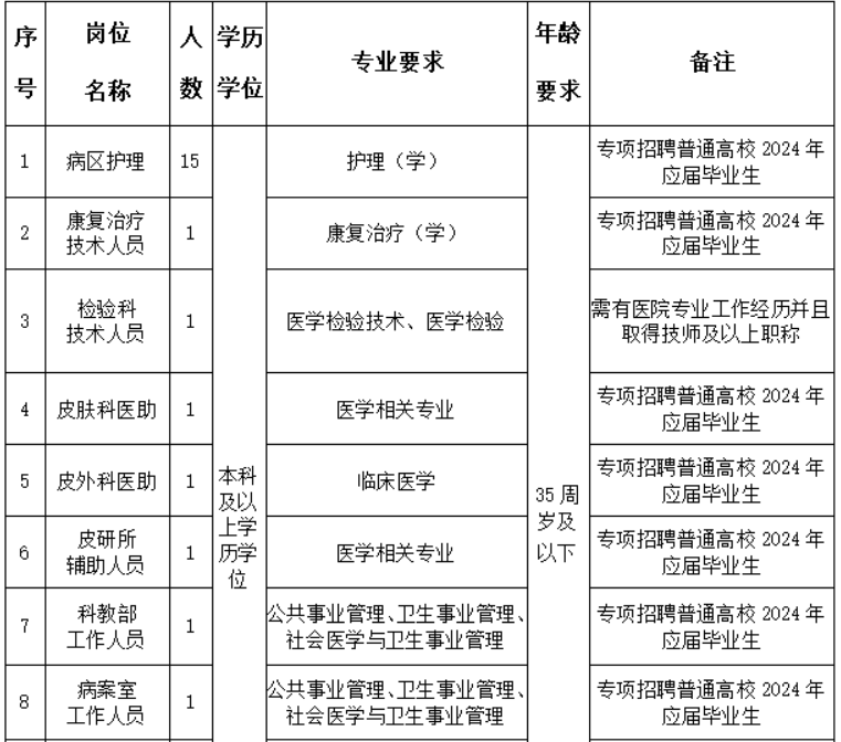 批准聘用的人员必须在规定的时间内报到,逾期不能报到的,或普通高校应届毕业生不能按时毕业并取得报考岗位规定的学历(学位)证书的(须在2024年9月30日前取得学历(学位)证书),或发现有不符合报考资格和聘用条件的,取消聘用资格。其中财务部工作人员、体检中心工作人员、皮肤科治疗室工作人员岗位采取协议工资制。