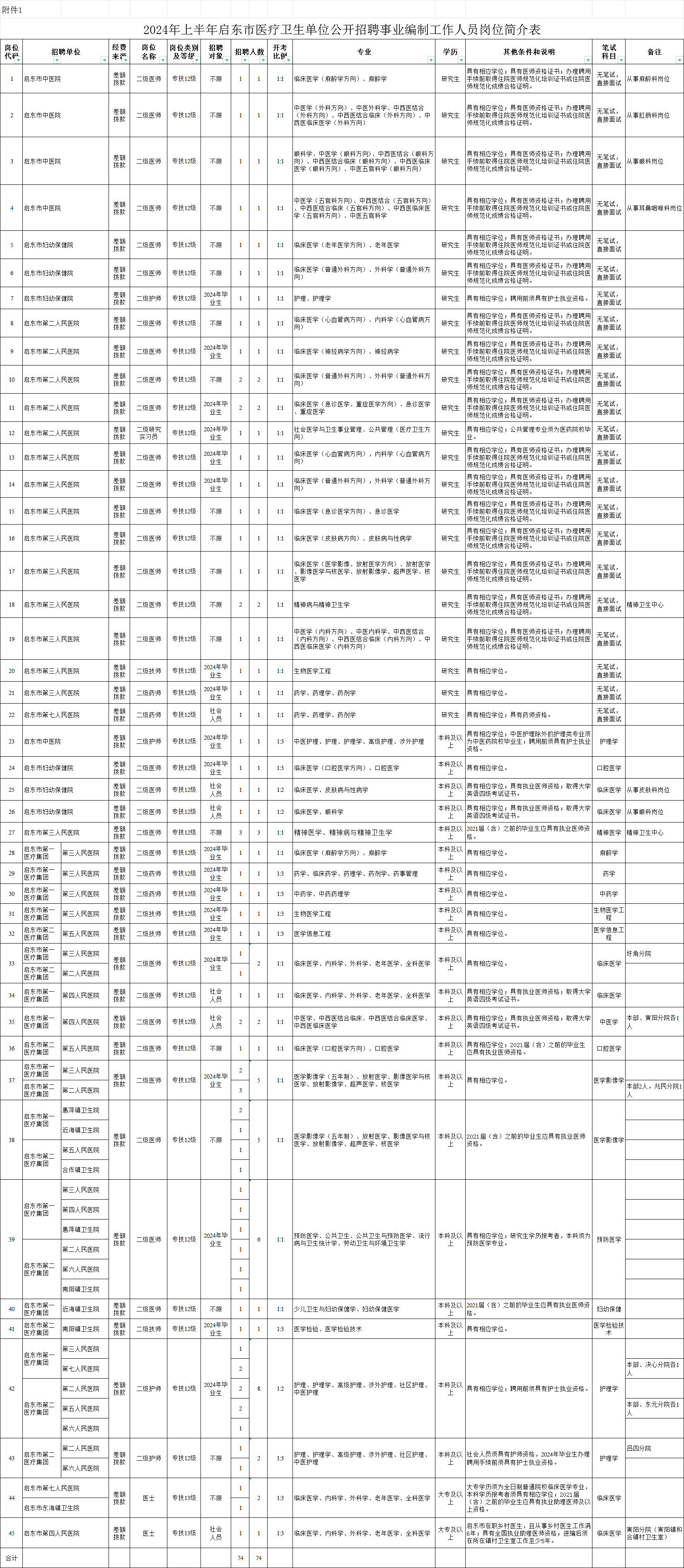 1.2024年上半年启东市医疗卫生单位公开招聘事业编制工作人员岗位简介表