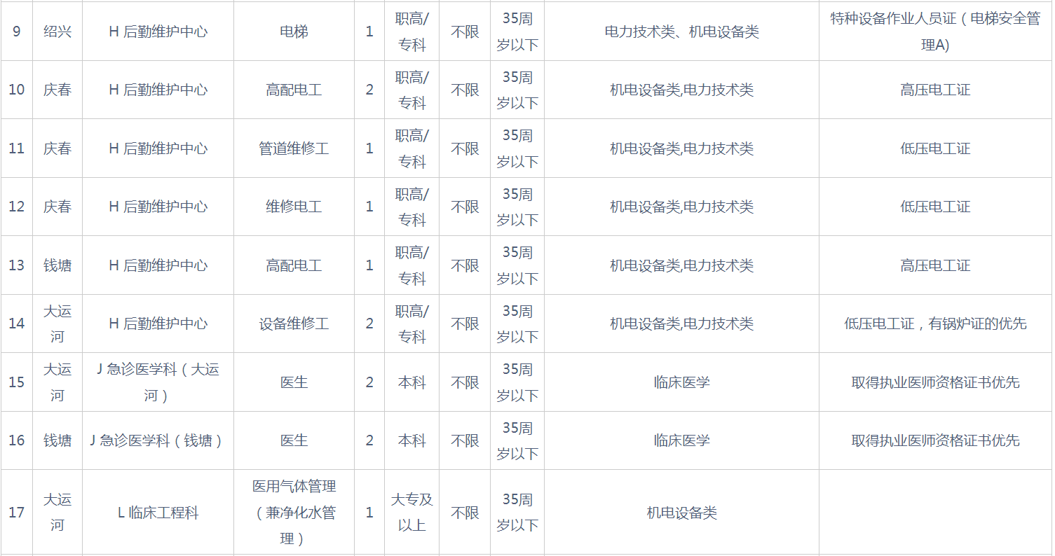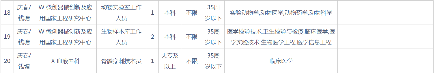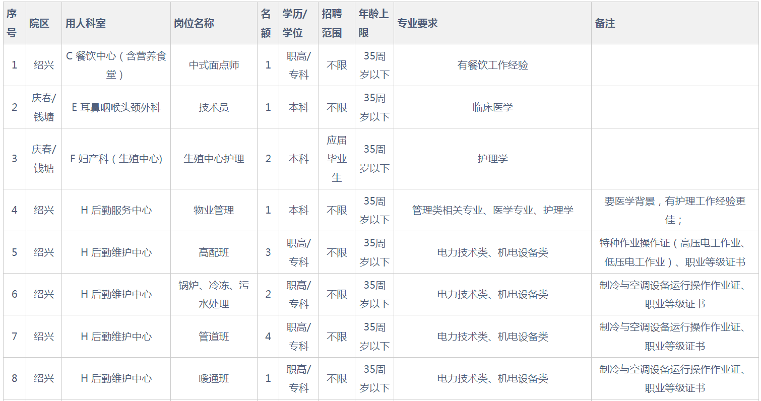 因工作需要,面向社会招聘,派遣至浙江大学医学院附属邵逸夫医院各院区工作,具体招聘事项如下:
