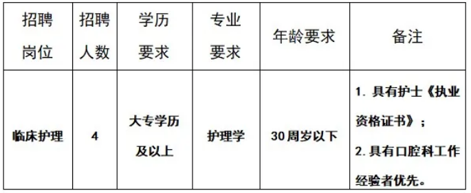因工作需要,我院现面向社会公开招聘编外护士4名,有关事项公告如下: