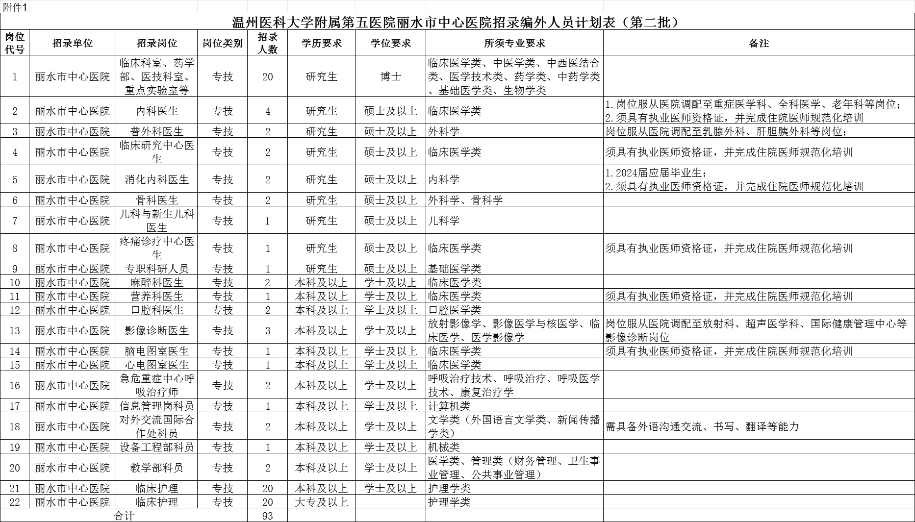 因工作需要,丽水市中心医院面向社会公开招录编外人员,现将有关事项公告如下:
