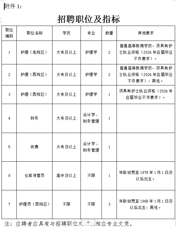 一、招聘职位及指标(详见附件1)。