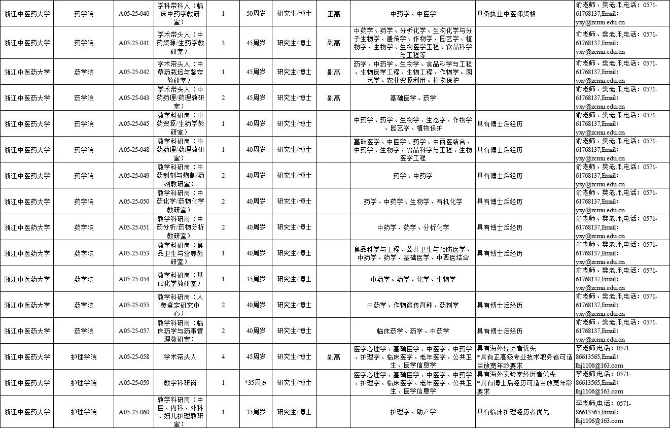 浙江省省属高校、医院和科研院所2025年特殊专业技术岗位目录(更新)