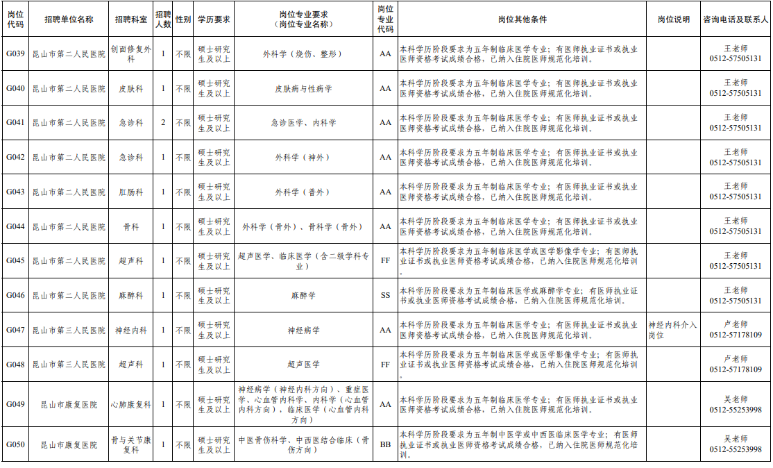 咨询电话:0512-55211705,0512-55211756;各选聘单位咨询电话详见《岗位简介表》。
