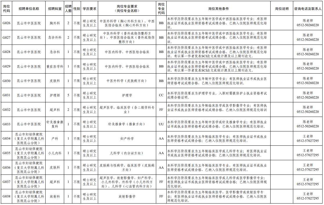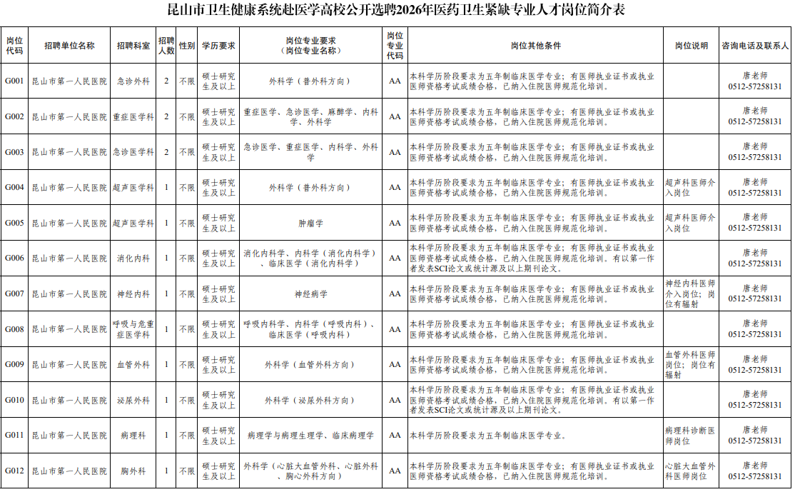 附件:昆山市卫生健康系统赴医学高校公开选聘2026年医药卫生紧缺专业人才岗位简介表