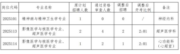 根据《芜湖市第一人民医院2025年公开招聘编内工作人员公告》,结合网上报名和通过现场资格审查的人数情况,现将岗位核减、降低开考比情况公布如下: