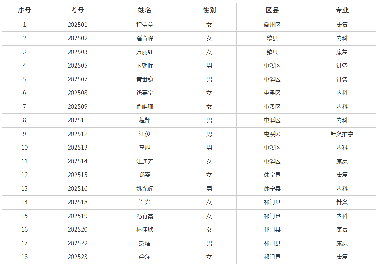 【考核公示】2025年度黄山市传统医学确有专长人员考核结果公示
