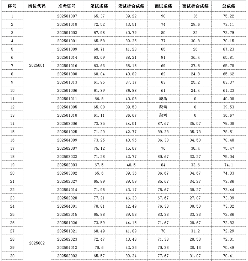 一、2025年含山县含山县县级公立医院公开招聘劳务派遣护理各岗位进入技能测试人员总成绩表(见附件)。