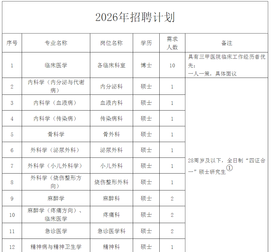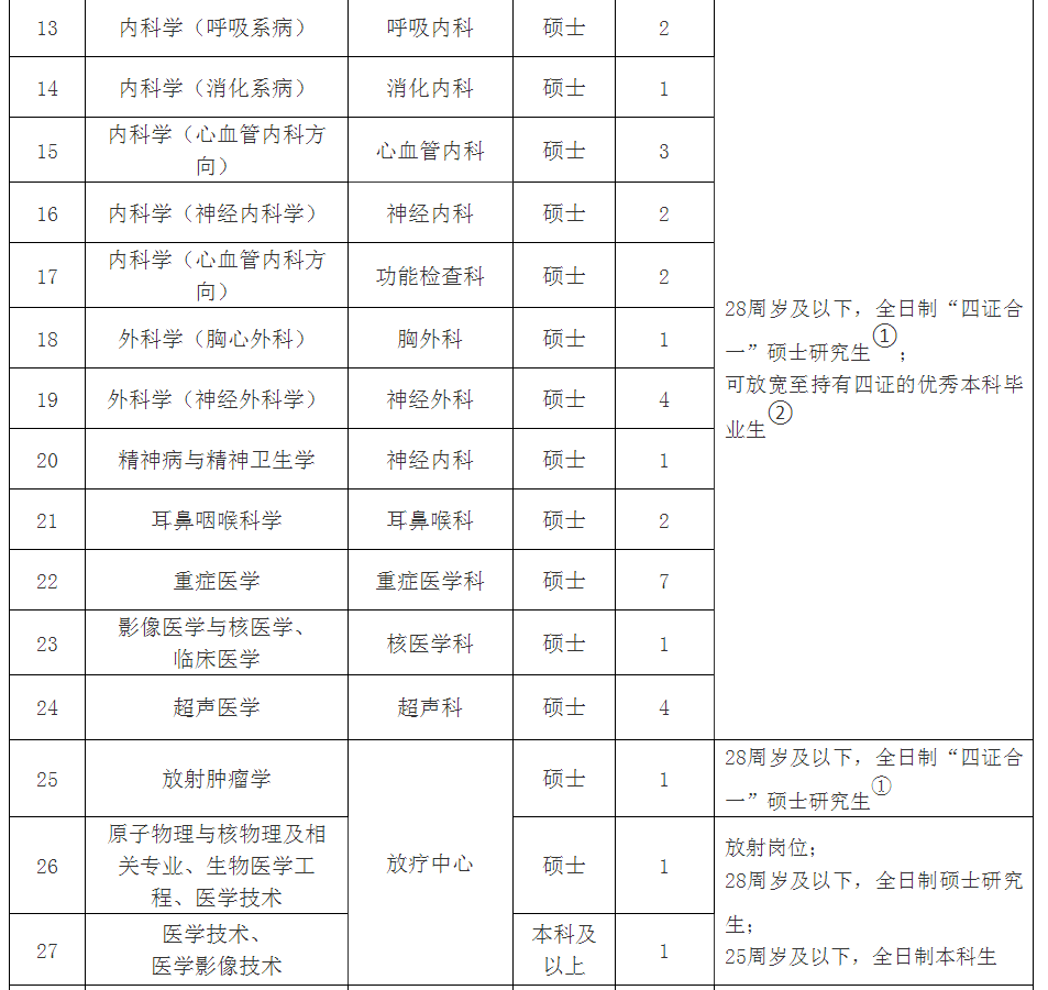 2.“全日制“四证合一”硕士研究生①”基础条件为具有全日制硕士研究生毕业证、学位证、医师资格证、住院医师规范化培训合格证书。