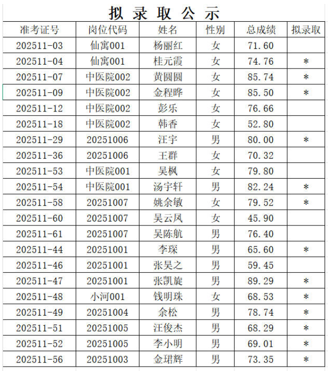 【录用公示】2025年池州石台县公立医院工作人员招聘(第二批)结果公示
