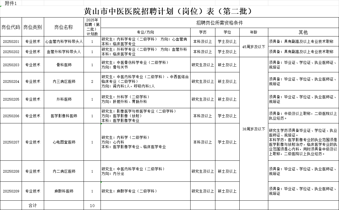 本次计划招聘急需紧缺人才10名,涵盖心血管内科、血管外科、骨科、医学影像科、外科、内三病区、心电图室、麻醉科、内二病区十一个学科领域(具体岗位及要求详见附件)。