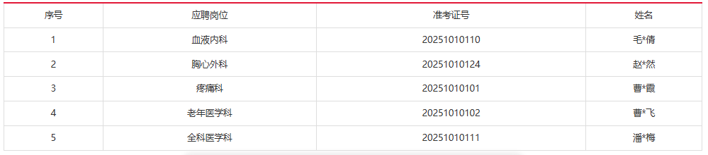 根据《合肥市第八人民医院2025年下半年公开招聘工作人员公告》,经过网上报名、笔试、资格复审、心理测评、面试、体检、考察等程序,现将拟聘人员进行公示,公示期时间为2025年11月19日-11月25日。如对上述拟聘人员有异议,请在公示期内以口头、书面或电话形式向合肥市第八人民医院人事处或监察室提出。
