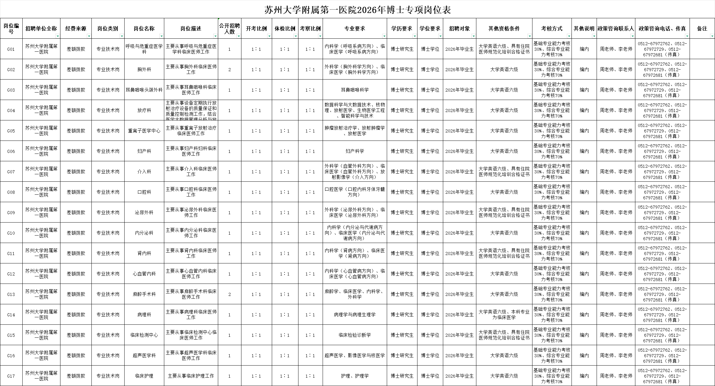 苏州大学附属第一医院人事处负责此次招聘政策咨询。