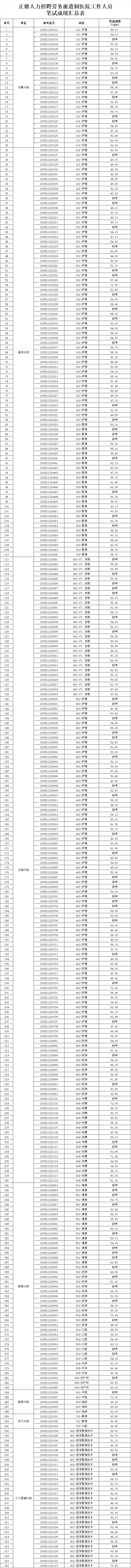 附件:正德人力招聘劳务派遣制医院工作人员笔试成绩汇总表