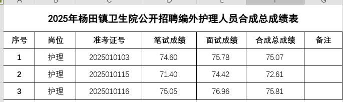 附件:2025年杨田镇卫生院公开招聘编外护理人员合成总成绩表 .xlsx【10.34 KB】