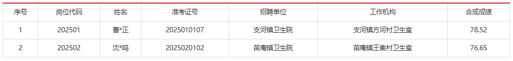 根据《宿州市埇桥区2025年大学生乡村医生专项计划招聘公告》,现对2名拟聘人员予以公示(名单附后),公示时间为5个工作日(2025年12月23日—12月29日)。如对拟聘人员有异议的,请在公示期内以书面或电话方式向宿州市埇桥区卫健委、宿州市埇桥区人社局或宿州市埇桥区纪检监察部门投诉。反映情况和问题必须实事求是,应签署或告知真实姓名。