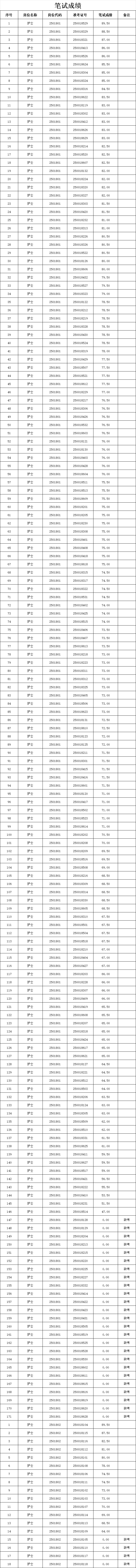 附件:笔试成绩