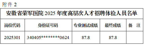 附件:安徽省荣军医院2025年度高层次人才招聘体检人员名单.doc [16.5 KB]
