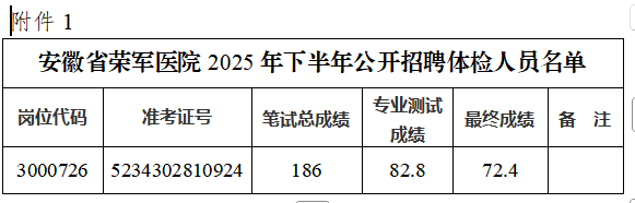 依报考人员总成绩从高分到低分顺序,根据招聘岗位数量,按照1:1比例确定各岗位参加体检人员(名单见附件)