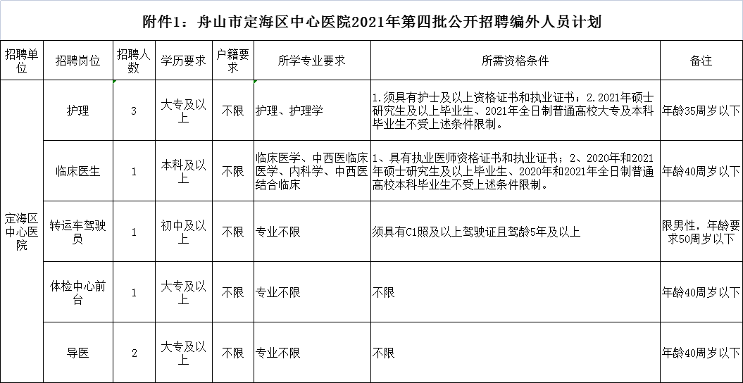 拟公开招聘编外人员8名,具体招聘岗位及计划数详见《舟山市定海区中心医院2021年第四批公开招聘编外人员计划》(附件1)。