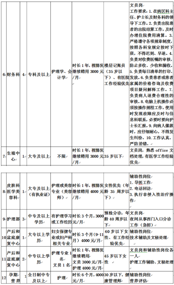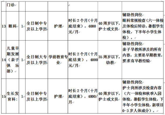 以上岗位要求应聘人员爱岗敬业,诚信友爱,有耐心、责任心,根据应聘人员自身综合情况择优录用,具体要求见下表: