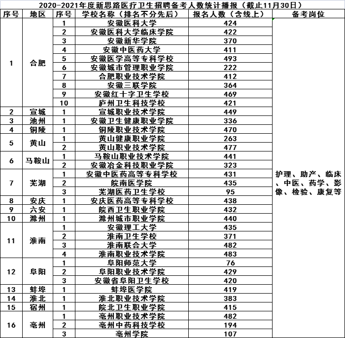 2020-2021年度新思路医疗卫生招聘备考人数统计播报(截止11月30日)