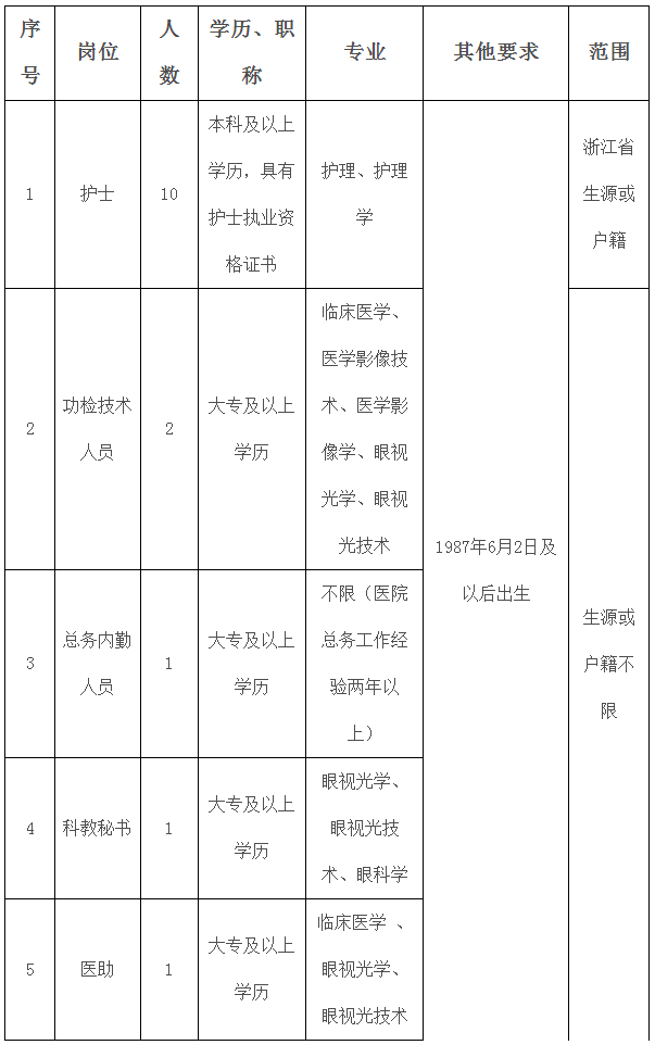 宁波市眼科医院是一家三级乙等眼科专科医院,因工作需要,经鄞州区卫健局批准,现面向社会公开招聘编外用工15名。现将有关事项公告如下: