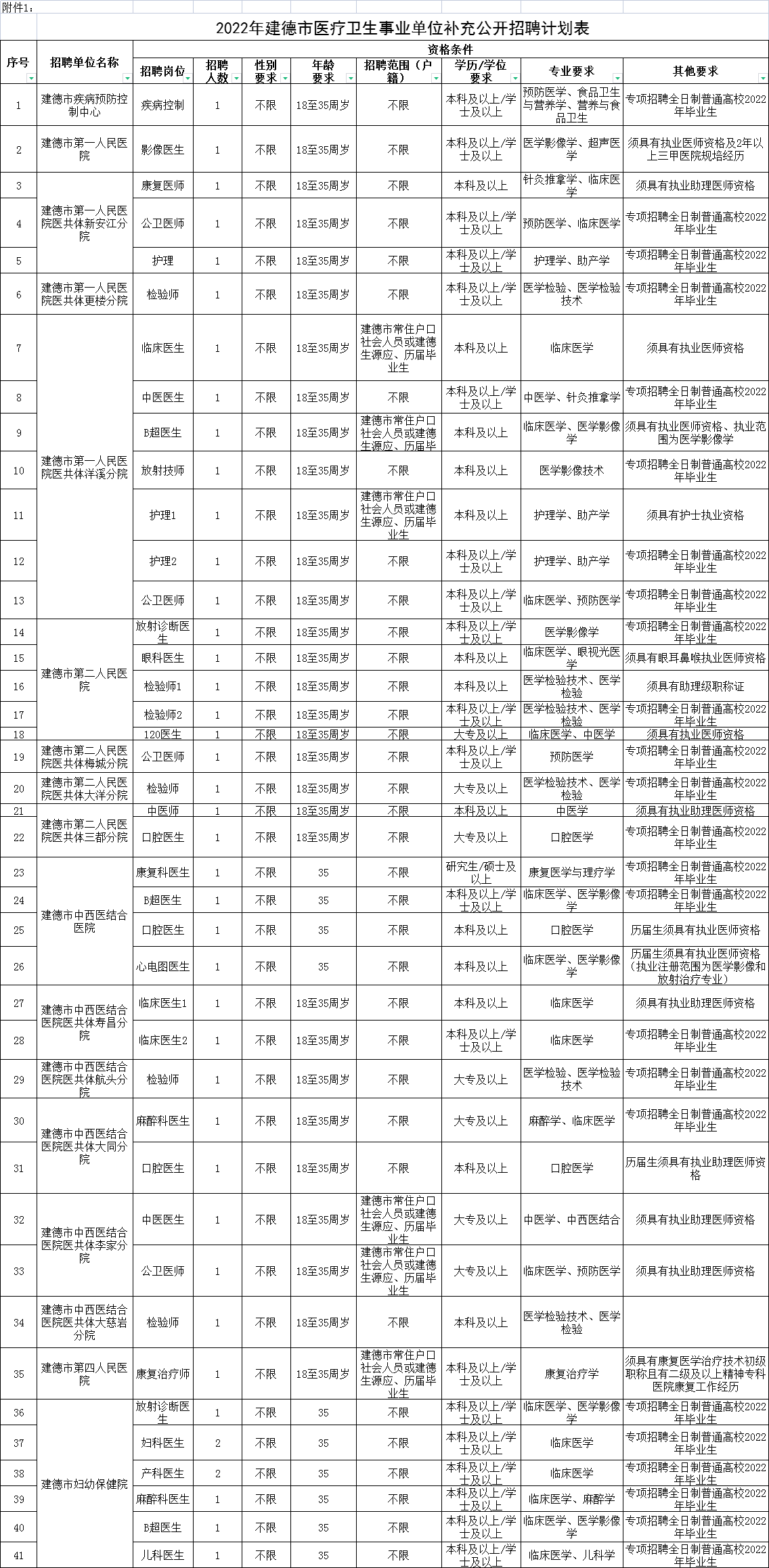 附件1:2022年建德市医疗卫生事业单位补充公开招聘工作人员计划表.xlsx