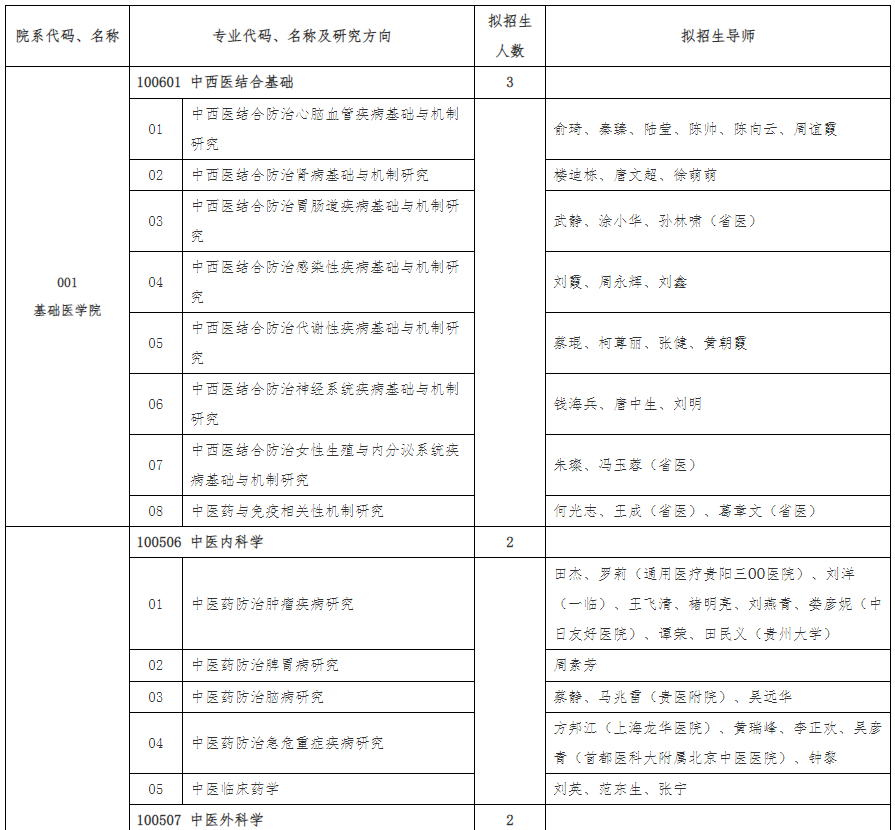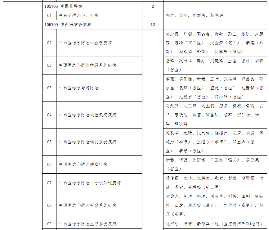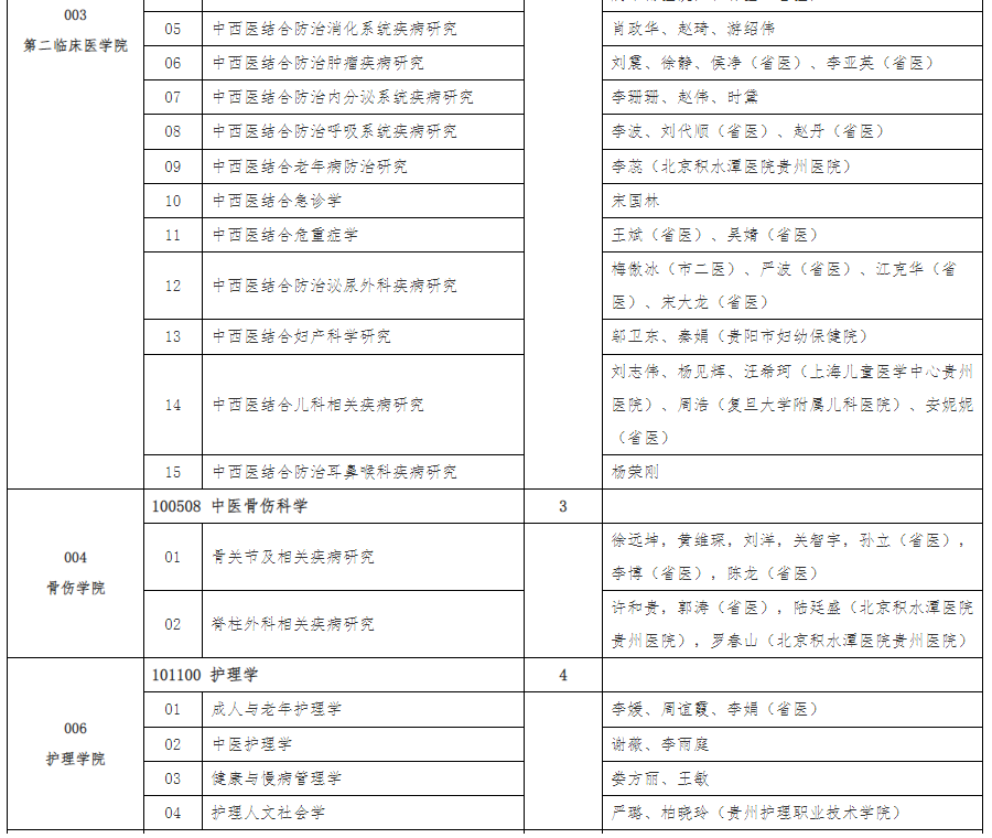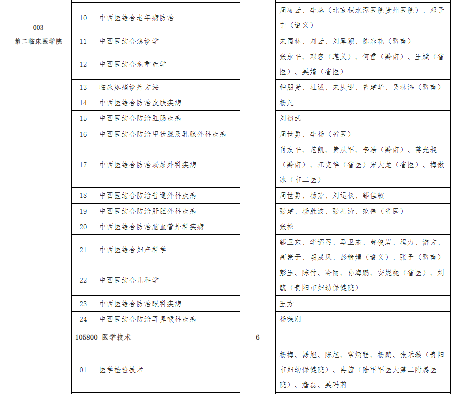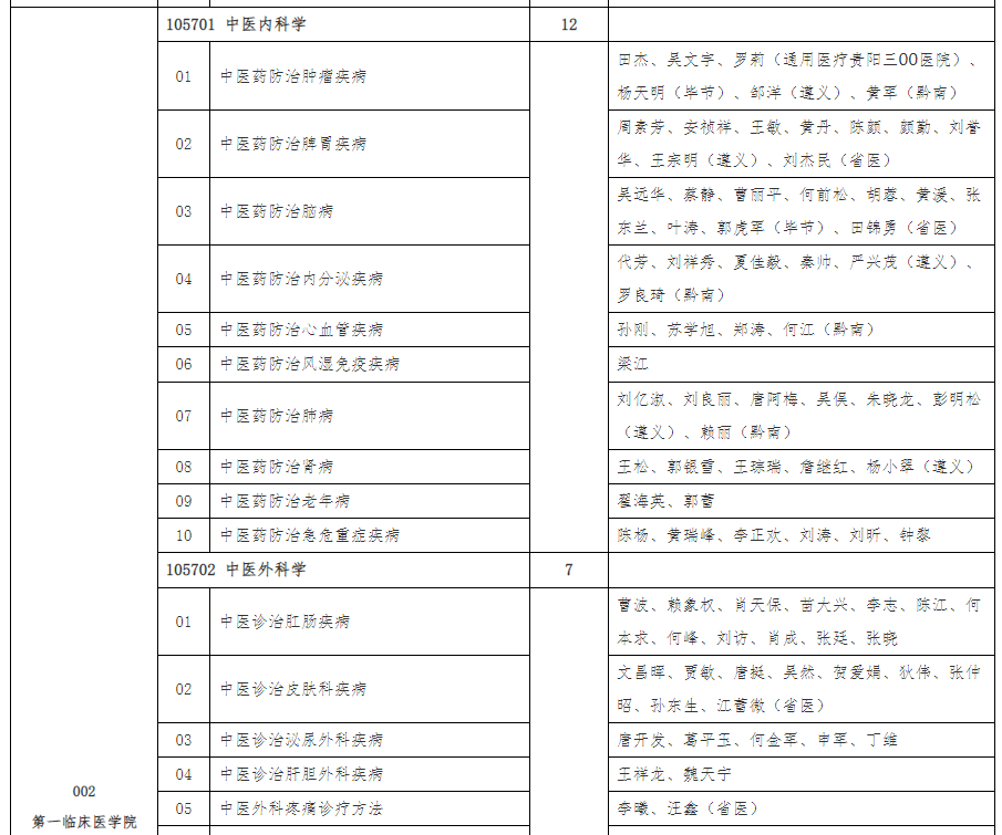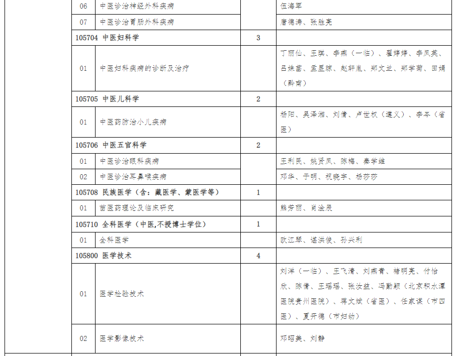备注:因临床专硕需要规培,规培地点不在贵阳的,导师名字后面标注了遵义、黔南、毕节。遵义代表遵义市中医院;黔南代表黔南州中医院;毕节代表毕节市中医医院。请考生悉知!