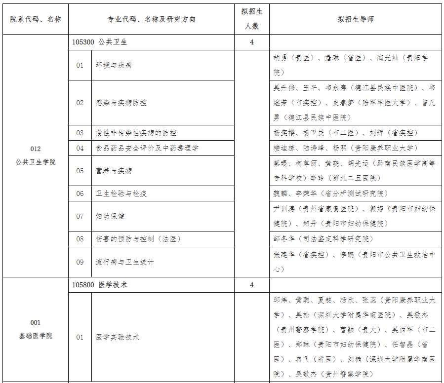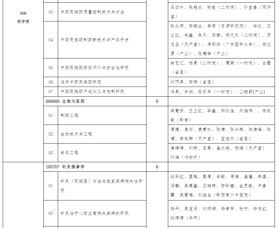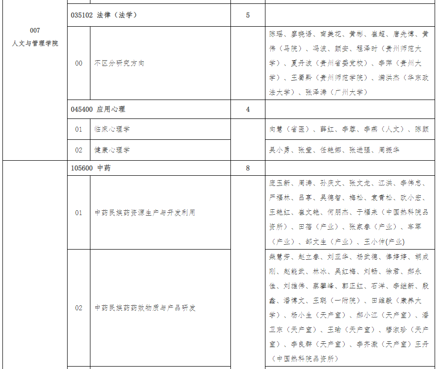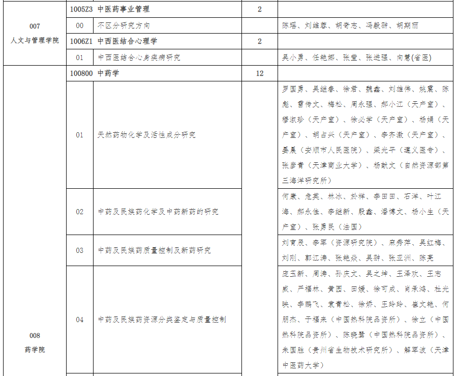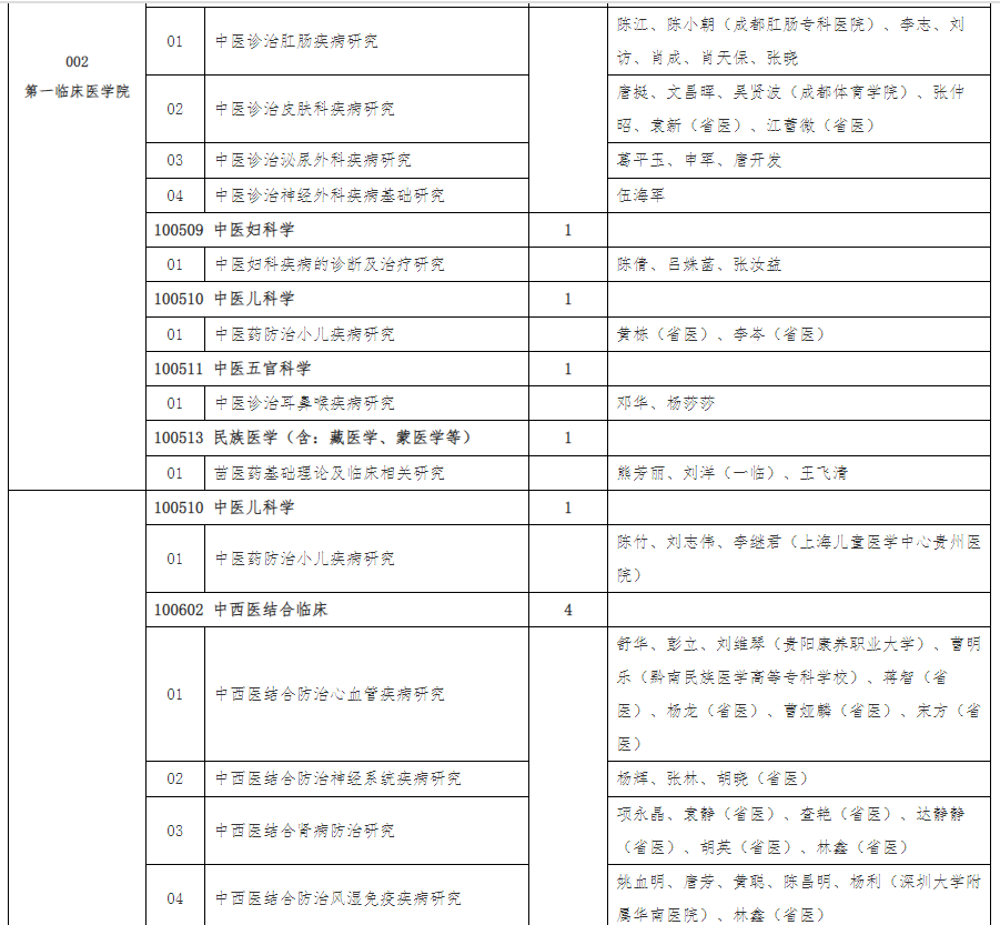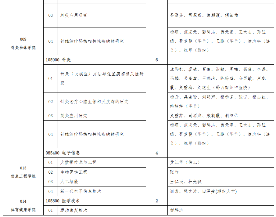 备注:因临床专硕需要规培,规培地点不在贵阳的,导师名字后面标注了遵义、黔南、毕节。遵义代表遵义市中医院;黔南代表黔南州中医院;毕节代表毕节市中医医院。请考生悉知!