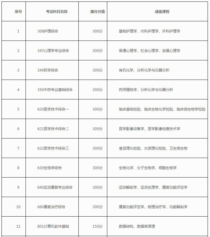 统考科目复习请参考教育部考试中心或相关专业教学指导委员会颁布的考试大纲。其中下列科目由教育部考试中心命题:101思想政治理论、199管理类综合能力、201英语一、204英语二、301数学一、302数学二、303数学三、307临床医学综合能力(中医)、408计算机学科专业基础。我校自命题科目如下表: