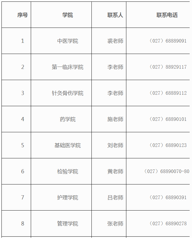 考生对所关心的专业相关问题若需详细了解,可向我校各学院咨询,联系方式如下: