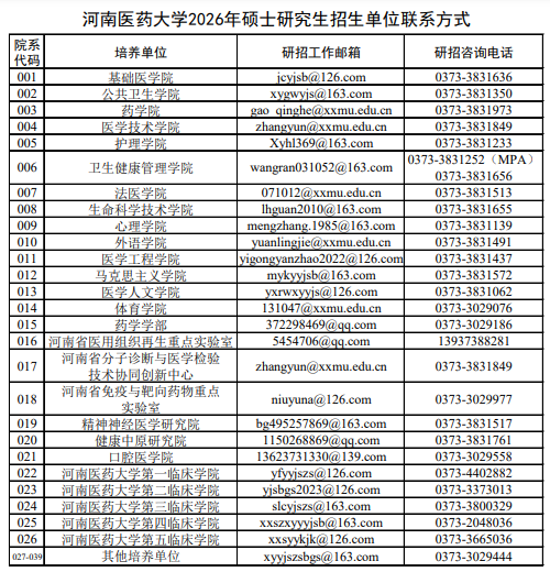 3.研究生学院地址:河南省新乡市向阳路东段688号河南医药大学西校区研究生学院,邮政编码:453003