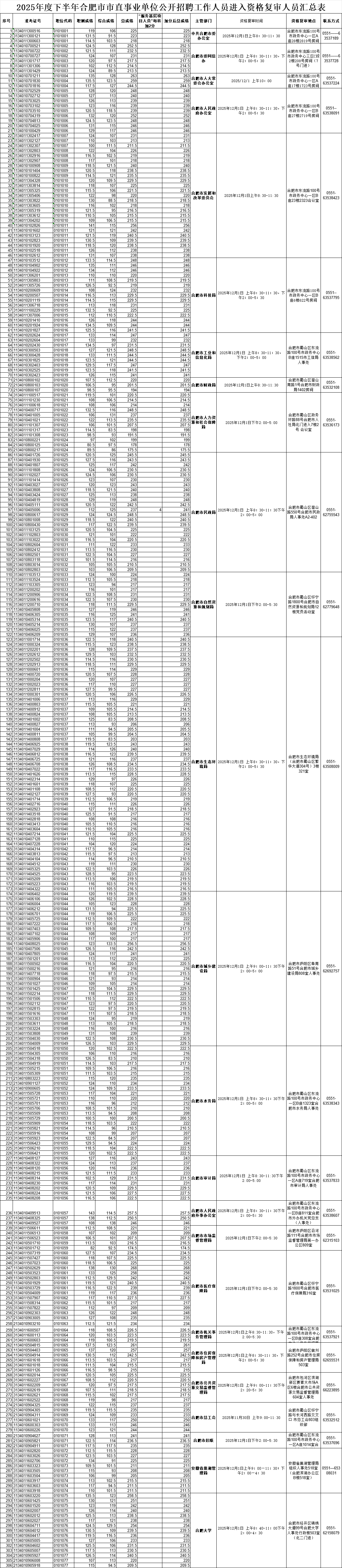 2025年度下半年合肥市市直事业单位公开招聘工作人员笔试总成绩及排名已经公布,现将进入资格复审人员及其他有关事项通知如下: