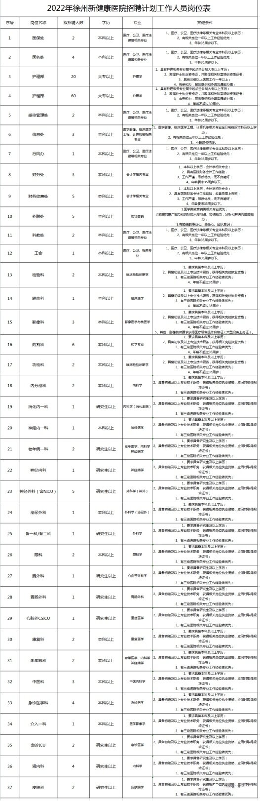 2、其他人员参照三甲医院(徐州市肿瘤医院等)的薪酬待遇。