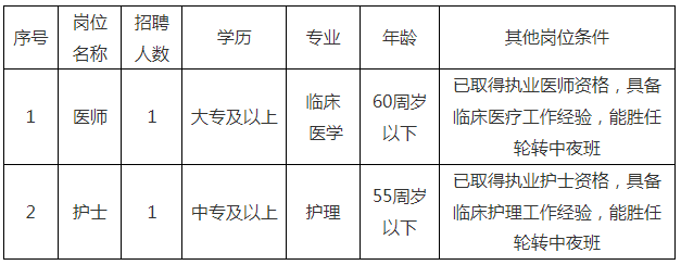 因工作需要,我院紧急招聘派驻无锡商业职业技术学院医护人员2名,具体岗位报名条件和要求如下: