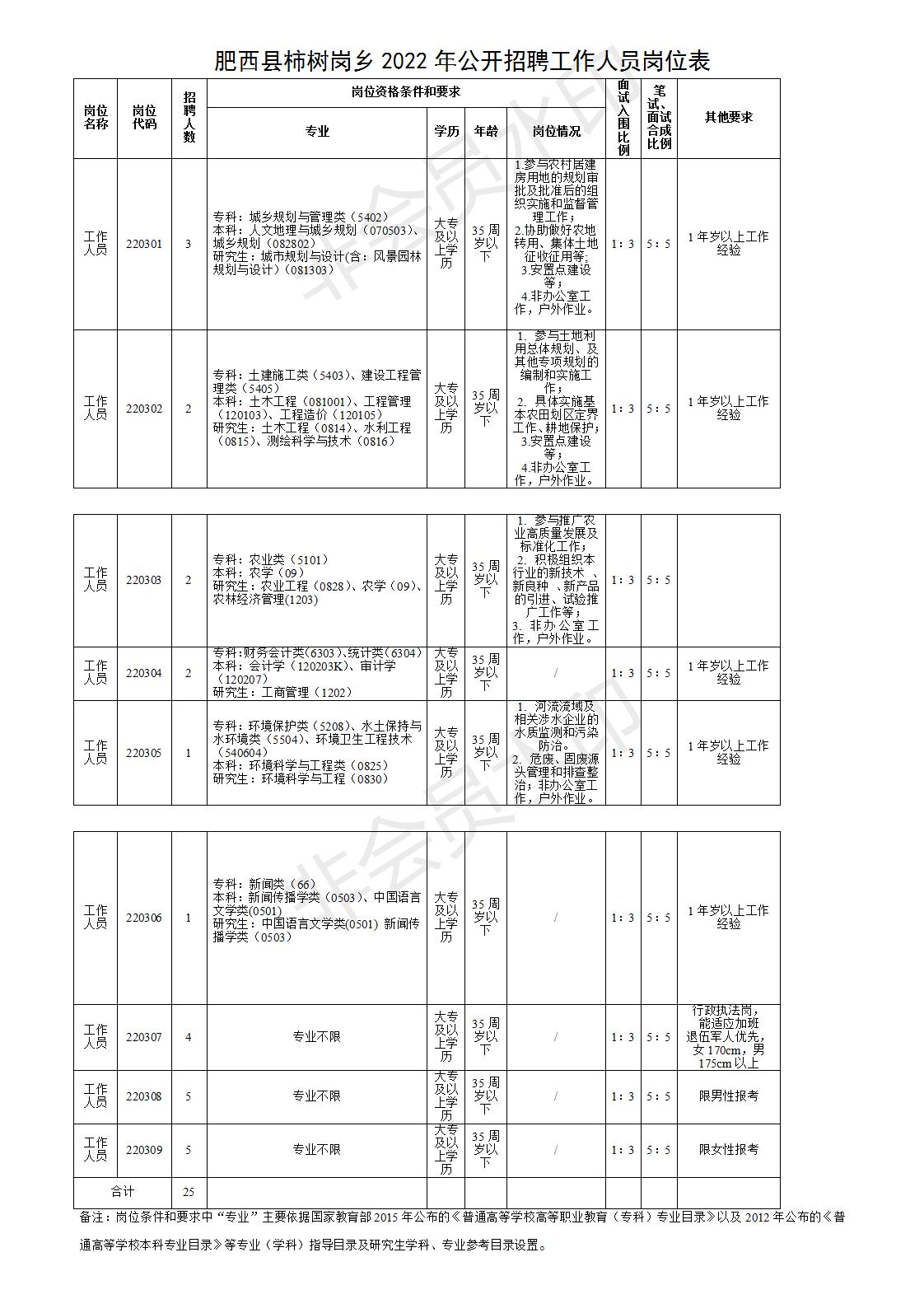经乡党委、政府申请、肥西县编办、肥西县人社局同意,肥西县柿树岗乡2022年面向社会公开招聘工作人员25名。现将有关事项公告如下: