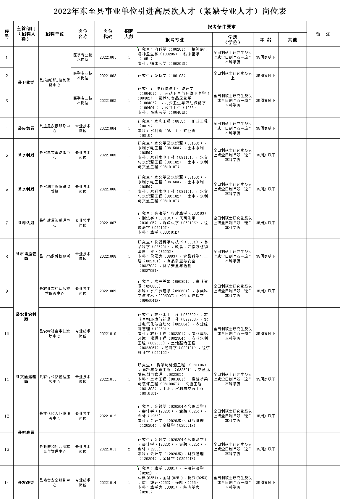 附件:2022年东至县事业单位引进高层次人才(紧缺专业人才)岗位表