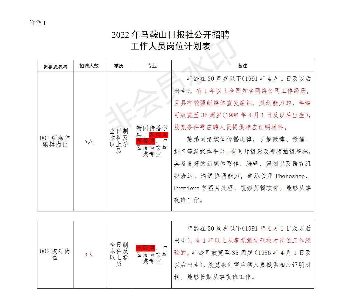 马鞍山日报社面向社会公开招聘工作人员8名,具体岗位见附件1。