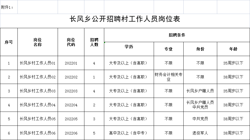 附件1:《2022年迎江区长风乡公开招聘村工作人员岗位表》