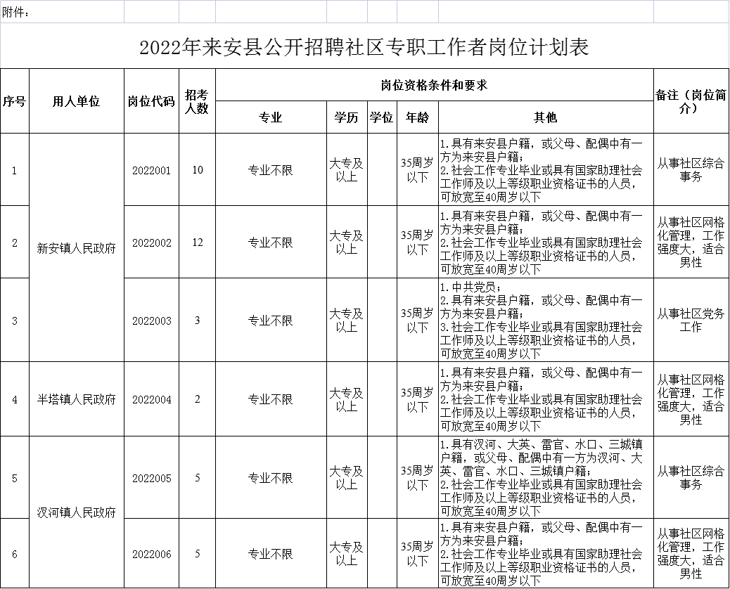 附件:2022年来安县公开招聘社区专职工作者岗位计划表.xls